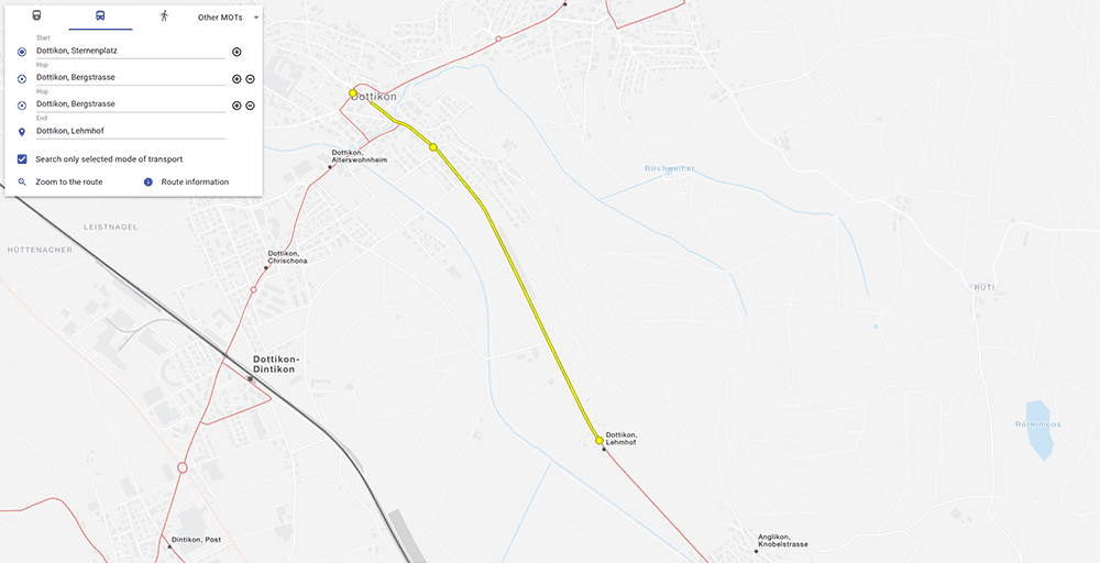 Technisch bilden von geOps bereitgestellte Webdienste und Open Source Bibliotheken die Grundlage der Karten-App. Dazu gehören Kartendienste und öV-spezifische APIs wie der StopFinder sowie die JavaScript-Bibliotheken react-spatial und mobility-toolbox.